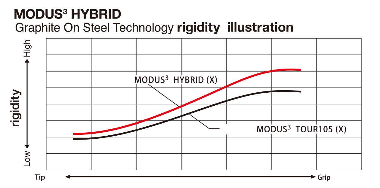 To deliver the carry distance and elasticity of graphite, as well as the contact feel and spin control of steel, we securely combined an ultralight steel shaft and graphite layer using patented advances in manufacturing and adhesive technology. The unprecedented shaft characteristics of TZT MODUS3 HYBRID Graphite On Steel Technology open up exciting new possibilities for competitive players to maximize hybrid and driving irons performance.