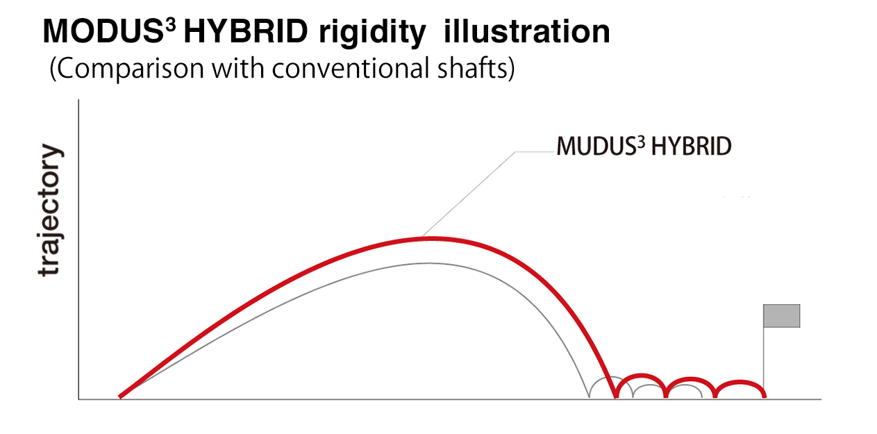 Our patented technology ideally combines steel and graphite. The steel delivers carry distance as well as directional stability due to its inherent resistance to twisting. The graphite, in multiple thin layers, balances weight and hardness while maintaining a solid feel. Spin control is enhanced by the overall thin structure, optimizing the restorative force. Moreover, a strong rebound force enhances the feeling of solid impact. Whether using a hybrid or driving iron, MODUS³ Hybrid is now the best solution in terms of both feeling and function.